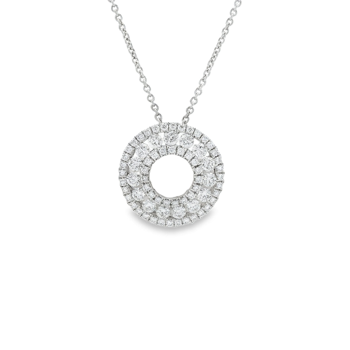 0.74ct Diamond Circle Cluster Pendant in 18ct White Gold on 9ct White Gold Trace Chain