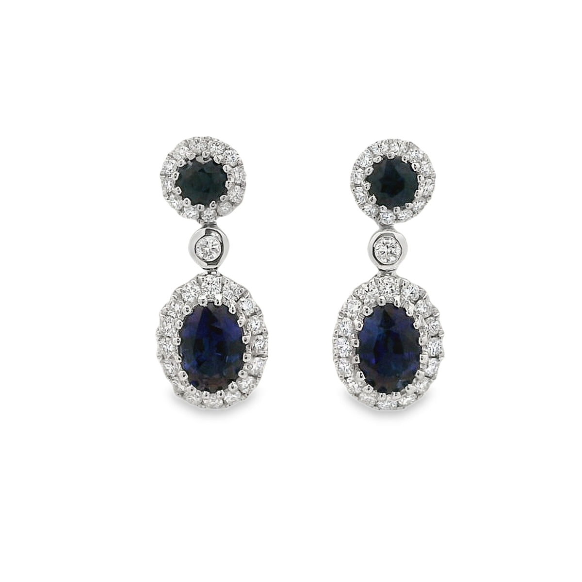 Sapphire and Diamond Oval Cluster Drop Earrings in 18ct White Gold